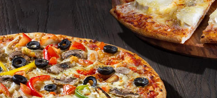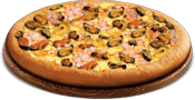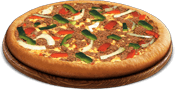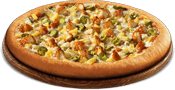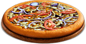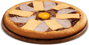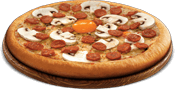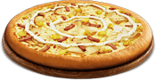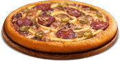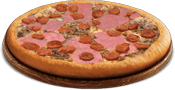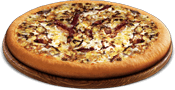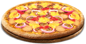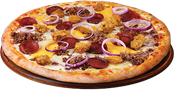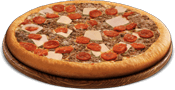 tomate, mozzarella, pepperoni*, bœuf haché, émincé de poulet, cheddar, oignons