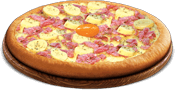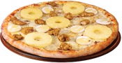 crème fraîche, mozzarella, émincé de poulet, chèvre, ananas, miel