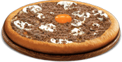 Sauce barbecue, fromage, pepperoni, viande hachée, merguez, poivrons, olives