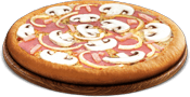 crème fraîche, double fromage, jambon, champignons, viande de veau fumé, oignons